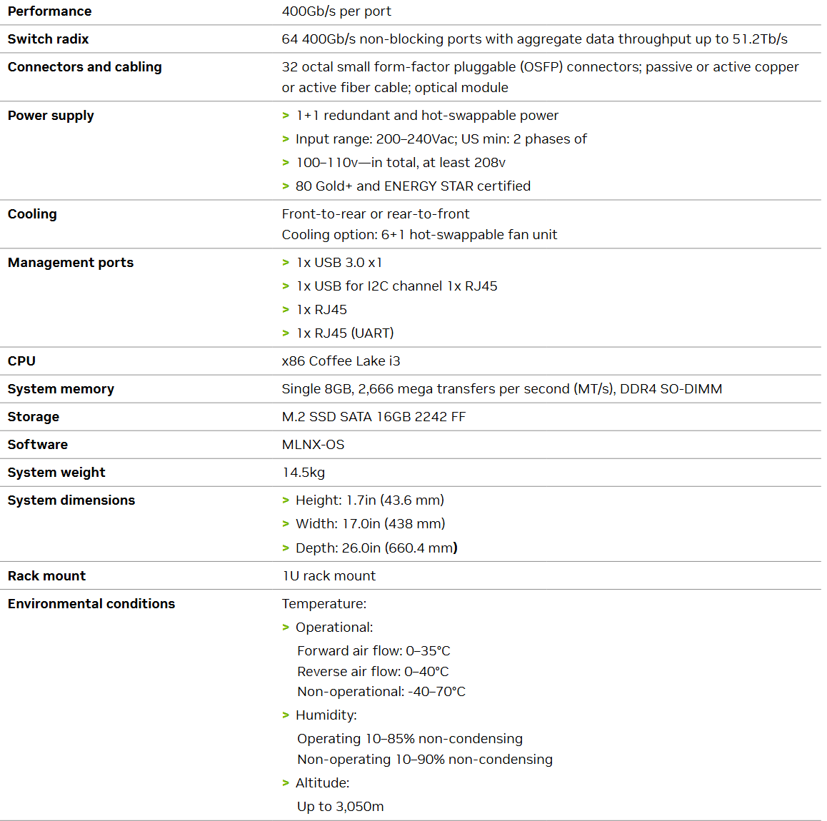 HL-MQM9700系列交换机采用 32 个 OSFP 物理连接器,可提供 64 个 400 Gb/s 端口或 128 个 200 Gb/s 端口,支持总计 51.2 TB/s 的双向吞吐量,每秒能够处理超过 665 亿个数据包。NVIDIA Quantum-2 InfiniBand交换机支持最新的 NDR 技术,可提供高吞吐量、网内计算、智能加速引擎、灵活性和稳健的架构,以满足高性能计算 (HPC)、人工智能和超大规模云基础架构应用,同时降低成本和复杂性。